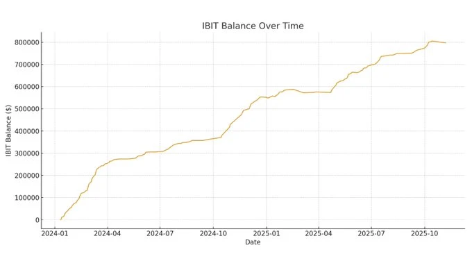 ➡️ Fred Krueger: “Dit is de allerbelangrijkste grafiek in Bitcoin. Het is de hoeveelheid BTC in IBIT. En het is een one-way train.”