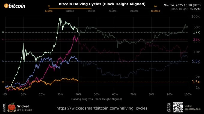 ➡️ Wicked: Nieuwe visualisatie: Bitcoin Halving Cycles (Block Height Aligned).