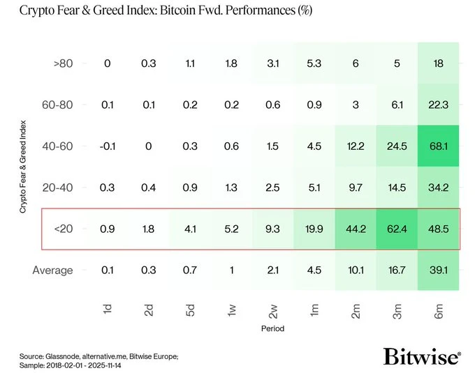 ➡️ Gemiddelde Bitcoin-prestaties wanneer de Crypto Fear & Greed-index onder 20 staat: