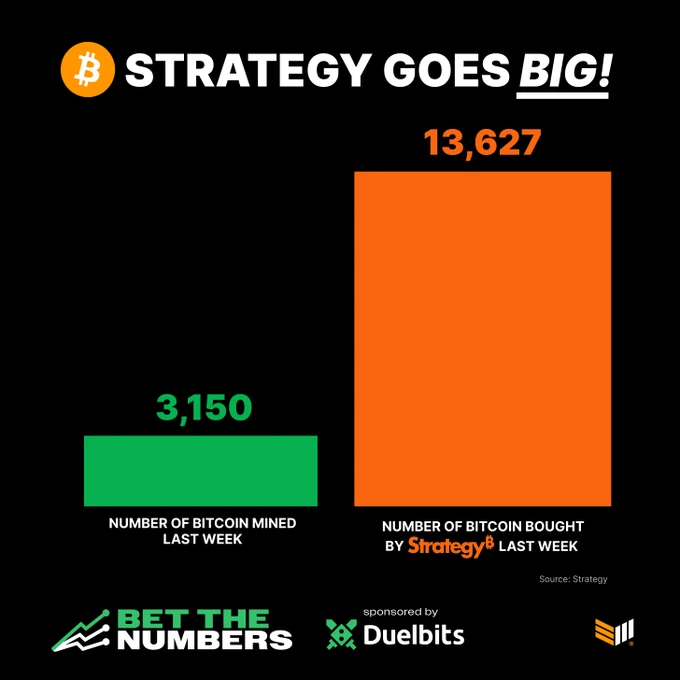 ➡️Strategy heeft vorige week nog eens 13,627 BTC gekocht voor $1.25 miljard.